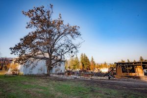 In the aftermath, Upward Bound Camp lost nearly its entire built campus including the gym, bunkhouse, activity building, and storage facilities, which were all housed on the 18 acre property. However, its oldest and most historically valuable asset, the 1923 Gates High School building, survived with minimal fire damage. The existing metal roof is directly credited as the reason for the survival of Gates School, now surrounded by scorched earth and remnants of the razed campus.